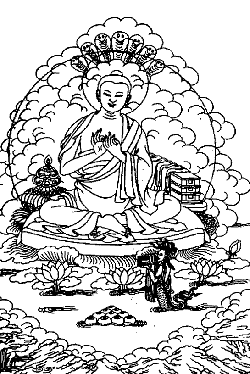 龍樹(Nagariuna)是大乘的祖師,生於約公元二至三世紀,是南印度的婆羅門種姓,傳說其父姓「龍」,母生他於樹下,故名「龍樹」。龍樹天資特別聰明,在孩提的時候,聽到婆羅門誦讀經典,數遍之後,他即能背誦。到二十歲以後,對天文、地理、數學,以及婆羅門和各道的經文,幾乎都讀遍了,而且理解力相當強,因此在青年時名氣就很大。 他有幾位同齡好友,都是學識超群。一天,大家議論道:我們把天下的經論都理解了,現在就是沒有學到法術,不能縱情逸樂。不久打聽到有一個術士,會隱身術,他們就去登門求教。那術士看到他們年輕,又動機不良,不願傳授。他們苦苦請求,術士纏不過他們,只得給每人一粒藥丸,囑告道:「你們在僻靜的地方,用水將藥磨化,塗在眼睛周圍,人們就見不到你們了。」,龍樹便當場試磨,細辨藥丸的氣味,對術士道:「你共用了七十樣藥物合成,對嗎?」,術士不勝惊訝,問他怎麼知道,龍樹說:「我是從氣味中辨別出來的。」,術士甚為嘆服,只得叮嚀要慎用此術。 龍樹等四人仗隱身術,從此常入宮,恣情取樂。百餘日後,宮中的一些美女,竟有人懷孕了。國王大為忿怒,嚴加責問。妃子們哀泣說:「非是我們不貞,是睡夢中有妖人作崇。」,國王召大臣商議。一老臣說:「凡這種事有兩種可能,一是鬼魅作崇,一是術士搗亂。可派幾個精明的人,暗暗分守在宮門背後,若是術人,總有跡象可露,可用兵器除之;若是妖魅,雖無跡象,亦可用符咒消滅。」,國王立即照辦。 不久有人來報,是術士所為。國王當即派武士數百人,禁閉宮門,手揮刀劍,望空亂砍。三個婆羅門術士被殺死了,惟有龍樹藥性未過,沒有現形,又屏氣凝神地躲在國王背後,終於逃脫了性命。 受此嚴重教訓後,龍樹方才覺醒,想到了佛陀所說:「貪欲是眾苦與禍患的根本,一切敗德喪命之事,皆由此引起。」,於是下了歸依佛門的決心。他尋到一位沙門虔誠請求,出家受戒。他在一佛塔待了九十多天,讀遍了所有經論,心不滿足,但已無其它經文可得。他辭師下山,又訪尋到北印度雪山的一座佛塔,向一位老比丘懇求,得到了《摩訶衍》大乘經典,他用心研讀求教。三個月後,於是就週遊列國,搜集沙門的各種經論。一路上,他還和諸外道及部派佛學者辯論,學者都辯不過他,他逐漸產生了驕傲,欲另自立一派,廣收徒弟,宣揚他的學說。 正在這時,有一位叫大龍的比丘,長髯突眼,目光炯炯,特來找他。對他說:「年輕人啊,你不能持井蛙之見,你的學識超過佛陀嗎?你且跟我到一個地方,讓你看看大乘經典,你再下結論吧。」,這位大龍比丘就把他領到一個深山的石洞,入洞數步,竟是另外一個世界,殿宇金碧輝煌,清靜雅致。老比丘把他領入龍宮,打開了一個個玉石寶庫,裡面藏著數不盡的稀世經典,寶庫裡發出陣陣幽香。大龍比丘說:「年輕人,這下夠你讀了吧?」,龍樹忙不迭地翻閱,口裡說道:「長老,我太感謝你了!」。 這下龍樹真的滿足了,這稀世經典比過去讀到的多十倍,玄理更其精妙深奧,他如飢如渴地晝夜閱讀,不明之處隨時就向大龍比丘請教,視野頓時開闊,心量也開始謙虛了。至此他才真正地感到,佛學浩如煙海,其理博大精深,沒有任何外道超得過它,夠他一生用心鑽研了。同時也就打消了自立門戶的陋見。 他在龍宮待了很久,把所藏的經典反復細閱,幾乎能背誦了。大龍長老又授予他一些神通術,他才別師出來,仍回到了南印度。從此大力宣揚佛法,說服外道,推廣大乘佛教。被他感化的婆羅門等外道,不計其數。 當時有位婆羅門上師,會一點咒術,心生嫉妒,欲與龍樹比個高下。他奏明國王,請王心觀究竟。國王規勸他:「我看你虛心一點吧,龍樹已是一位得道高僧,和多年前大不同了,他明與日月爭光,智與聖心並照,你為什麼不能容他呢?」,婆羅門說:「陛下被他巧言迷惑了,諒他沒有什麼真本事,如若不信,看我們比試吧。」,國王見他固執,只得准奏。 比賽的那天,國王與龍樹先坐在聽政殿上。婆羅門後到,他見國王如此尊重龍樹,心中更是不悅,便於殿前立即作法,只見現出一個廣大潔淨的黃金池子,水波潾潾,中央升起一株千葉蓮花,那婆羅門高坐其上傲慢地說:「龍樹,你看我坐在蓮花之上,宛如天神,而你屈居地下,卑微可笑,你敢與我蓮上的大德智人辯論嗎?」。 龍樹也不答言,從容地離開座位,用咒言化作一頭龐大的六牙白象,自坐其上,繞黃金池子一周;然後舉步池中用象鼻把那婆羅門高高舉起,摔於地下,蓮池與白象瞬間隱去,惟見那婆羅門腿折腰傷,一副可憐之相。他知非龍樹對手,匍匐於地,叩首懇求:「恕我力不自量,毀辱大師,伏請多諒!從此願意歸依佛門,開我愚蒙,求大師收我為弟子。」。 印度又有一個鄰國,國王篤信外道,並強迫其臣民亦信奉外道;對沙門釋子,則非平等對待。龍樹聞之,特前往宣揚佛法。其時該國正在招募國王衛士,龍樹應募,很快升為校衛。他在短時期內,幫助整頓隊伍,嚴明紀律,使國王的衛隊面貌一新。一日國王出巡,龍樹率領衛隊荷戟前行,彩旗招展,步伐整齊,威風凜凜。國王見了甚是滿意,便問待者:「帶隊的是甚麼人?」,待者答:「此人奇怪得很,不吃王家一口飯,也不要王家一文餉銀,說是來保護國王,整飭軍紀。」。國王亦覺奇怪,就召他晉見。問道:「你是什麼人?」,龍樹答:「我是一切智人。」,國王惊愕,半晌說:「一切智人曠古少有,你敢大言不慚嗎?」,龍樹說:「國王如果不信,可以當場試驗。」,國王心裡想道: