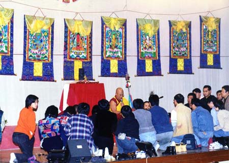 Taken in 1999 in a Hong Kong teaching event. Rinpoche is giving refuge ordination here in this photo.